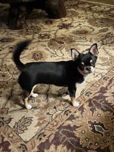 Josey is a very socialized, smooth coat, black/tan/white female AKC Chihuahua. She is intact. She is housetrained and very playful and affectionate. She has the “sassy” temperament Chihuahuas are known for and she is intelligent. We adopted her in hopes of adding her to our breeding program. However, she has a very slight heart murmur (1/6) and although it does not affect her activity level, which is high, or her life in general, we have decided to rehome her to a pet home. She weighed 7.3 lbs at her Feb. 2026 vet check. She is current on her shots. Her next heat is around the corner, in April. She loves racing around the back yard with her pals, competing to see who is the fastest. She loves jumping up and down into our laps to give and get some pats and kisses. She loves doing zoomies around the furniture at high speeds! She has a lovely breed conformation and apple head. She loves adventure and finds it everywhere she goes! She is ready to adopt and if you are interested, please email me and I will send you a questionnaire to fill out to see if Josey would be a good fit!